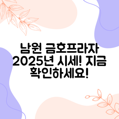 전라북도 남원시 왕정동 금호프라자 아파트의 2025년 시세를 고려할 때, 많은 투자자들이 적절한 전략을 갖추지 않으면 손해를 볼 수 있다는 우려가 큽니다.