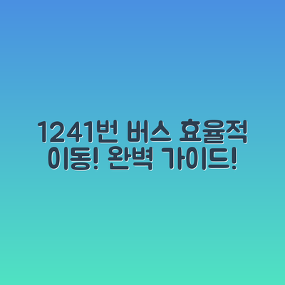 대중교통을 이용할 때, 어느 쪽이 더 효율적인 이동 수단일까 고민해본 적 있나요? 많은 사람들이 1241번 버스를 선택하는 이유를 살펴보면, 실속과 편리함을 모두 갖춘 선택이기도 합니다.