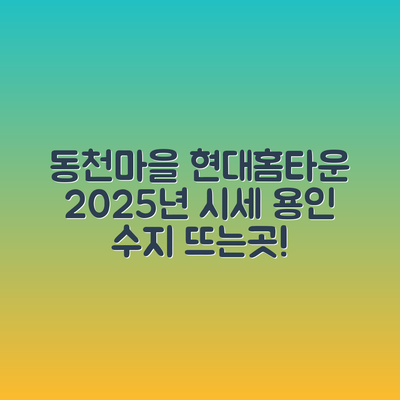 여러분, 부동산 투자에 대해 고민해보신 적이 있으신가요? 특히 경기도 용인시 수지구 동천동 동천마을현대홈타운2차 아파트와 같은 아파트를 투자 대상으로 생각할 때는 여러 가지 전략을 세우는 것이 중요해요. 2025년 11월 시세를 고려하면서 어떻게 접근해야 할지, 한 번 이야기해보겠습니다.