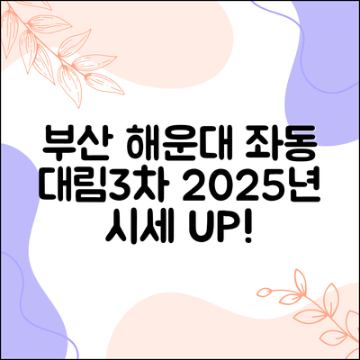 안녕하세요, 여러분! 오늘은 부산시 해운대구 좌동 대림3차 아파트에 대해 알아볼 텐데요. 혹시 여러분도 부동산 투자에 관심이 있으신가요? 그렇다면 2025년 12월 시세가 어떤지 살펴보는 것이 좋겠죠!