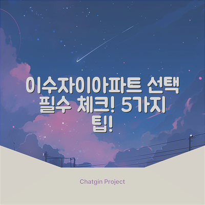 주거지 선택 시 항상 주변의 변화 가능성을 주의 깊게 살펴봅시다. 개발 계획이나 재건축 예정지 여부가 이수자이 아파트 가치를 영향을 줄 수 있습니다.