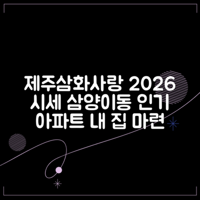 제주도 제주시 삼양이동 제주삼화사랑으로부영3차 아파트에 대한 시세를 분석하여 주거 특성을 이해하는 데 도움이 되는 유용한 가이드를 제공합니다. 이 분석은 2026년 1월의 시세를 기준으로 합니다.