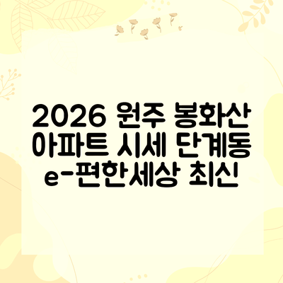 2026년 1월 강원도 원주시 단계동 봉화산e-편한세상 아파트의 시세를 살펴보면, 트렌드의 변화가 지속적으로 나타나고 있습니다. 특히, 매매 및 전세 가격의 변동은 다양한 요인으로 인해 발생합니다.