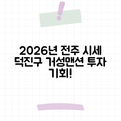 여러분, 아파트를 살까 전세를 구할까 고민해본 적 있으신가요? 특히 전라북도 전주시 덕진구 진북동 거성고속맨션1차 아파트의 시세를 보면서 어떤 결정이 더 좋을지 고민하는 분들이 많으실 겁니다. 특히 2026년 1월 시세는 어떻게 변할지 궁금하기도 하죠.