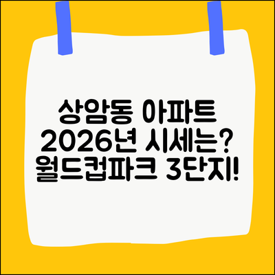 상암동 아파트 시장은 다양한 호재로 인해 주목받고 있습니다. 특히, 2026년 1월 서울시 마포구 상암동의 상암월드컵파크3단지 아파트의 시세 전망은 여러 요소에 따라 달라질 수 있습니다.